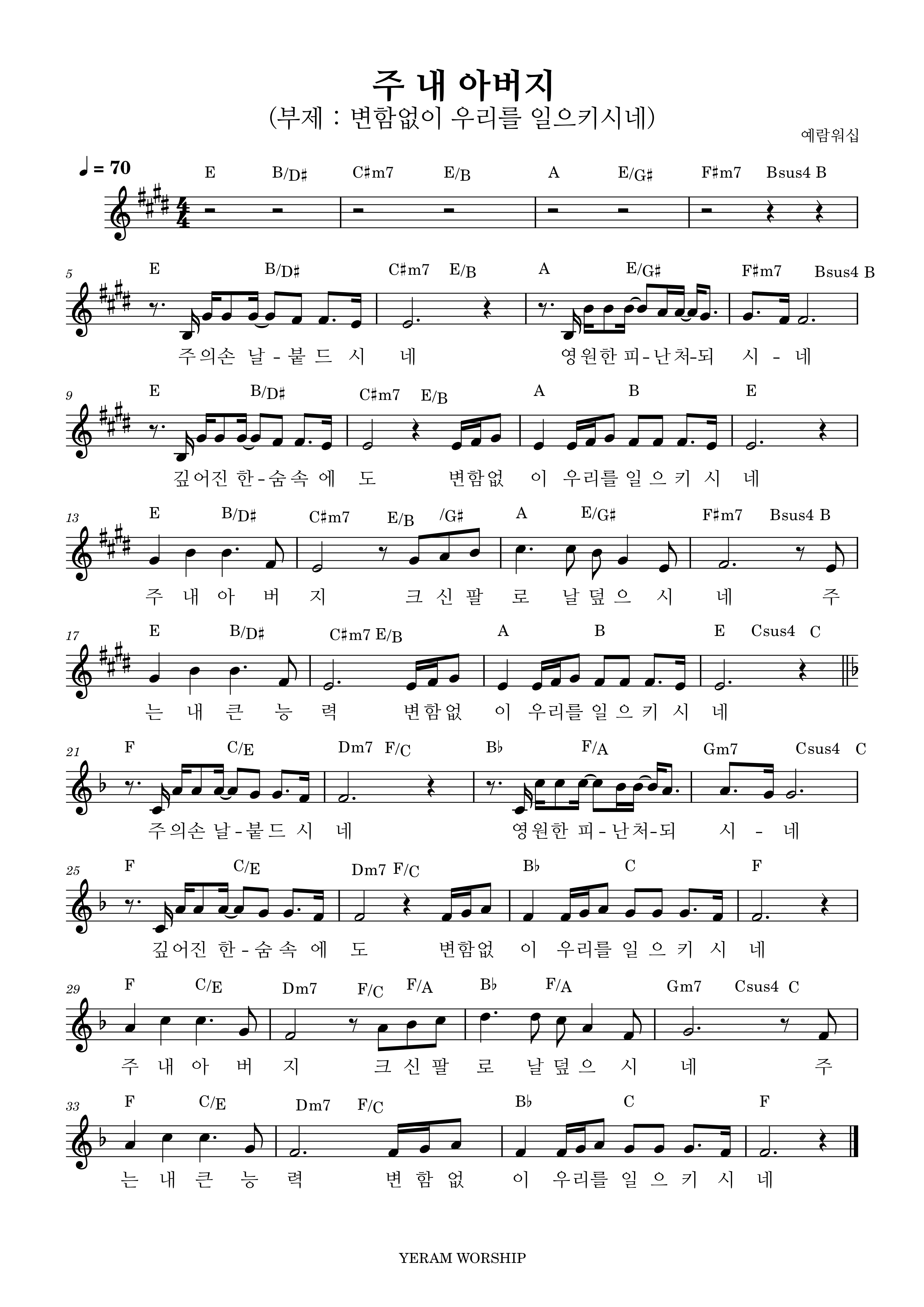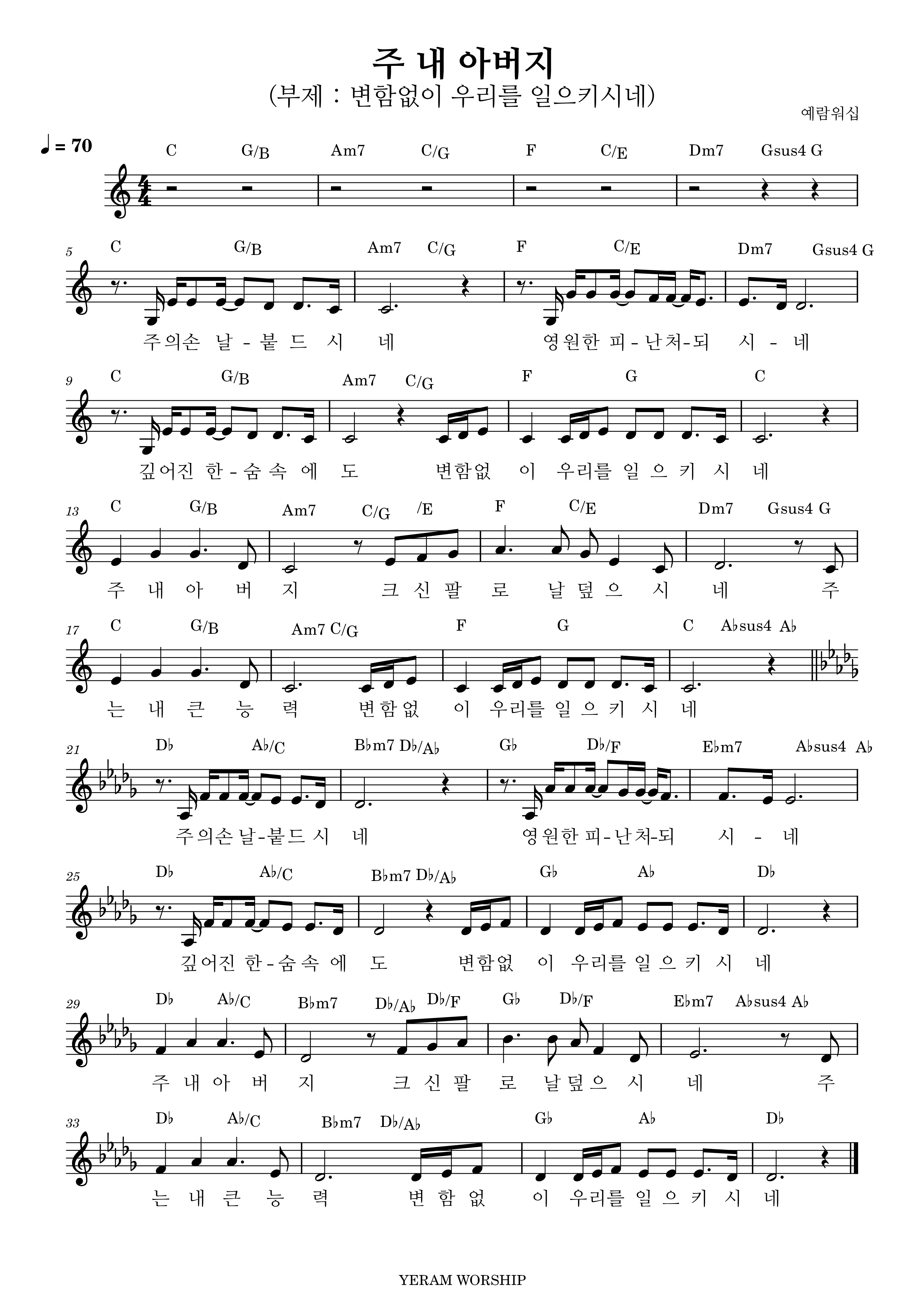 * 「주 내 아버지」의 원곡(D장조) 악보는 예람워십 인스타그램 DM을 통해 받으실 수 있습니다! 바로가기