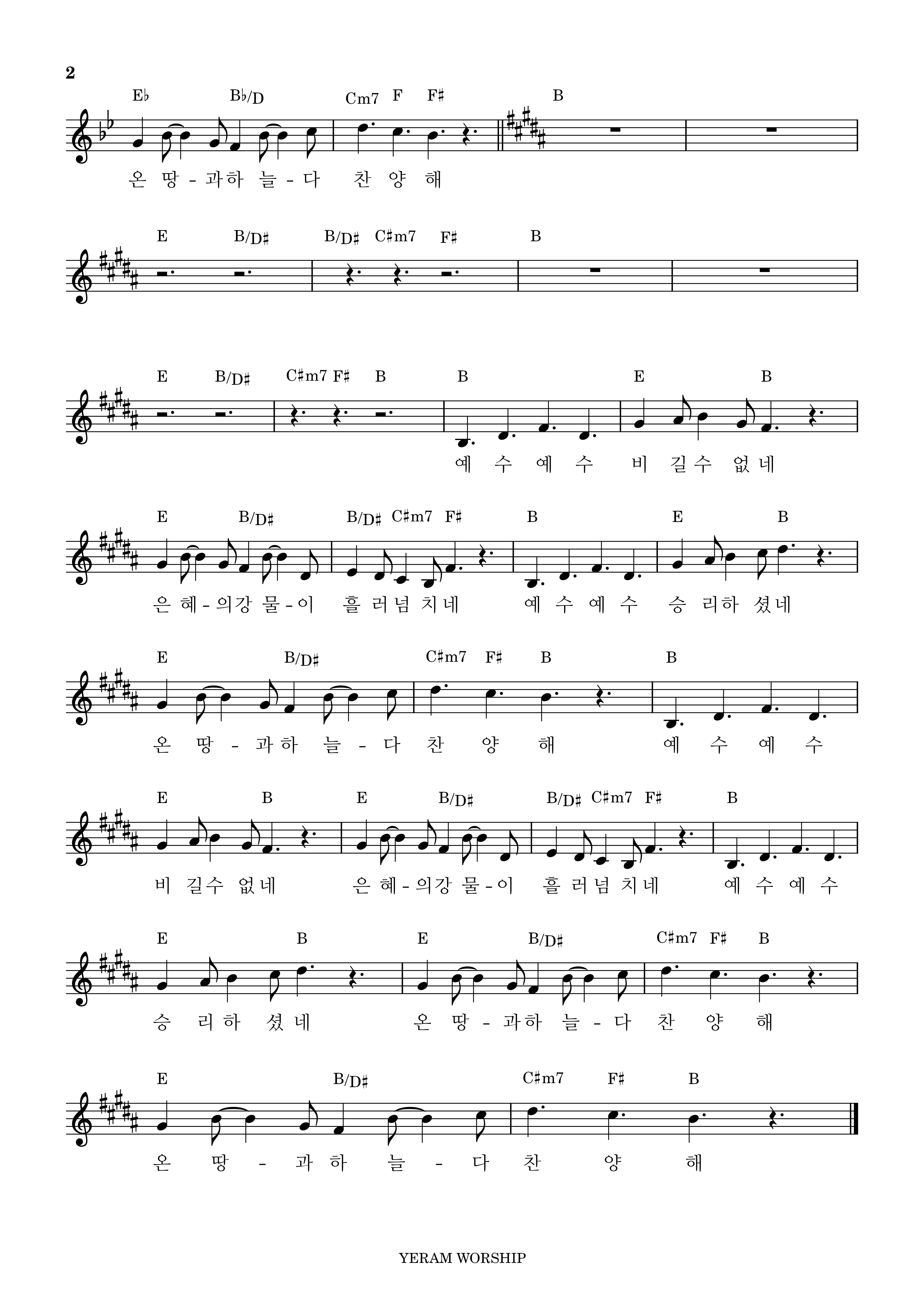 | [C, E장조 악보] 주 내 아버지 (변함없이 우리를 일으키시네) My Father - 예람워십 (키 업 포함, Keyup) (530) | 2022.08.07 |